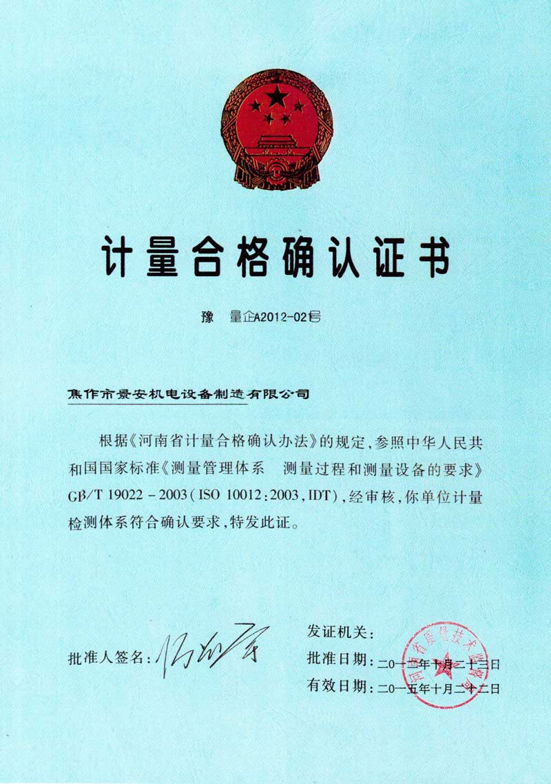 計量合格確認證書