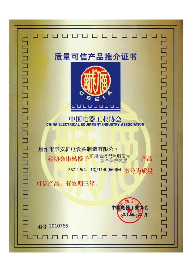 礦用巷道燈用本安電源專利證書